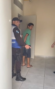 Momento em que os agentes do Japeri Presente chegam com Yuri da Silva Eugênio na 63ª Delegacia de Polícia (Japeri)/Divulgação