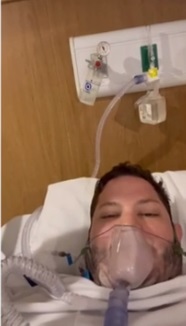 Nas imagens, ele aparece com uma máscara e deitado na cama de um hospital
